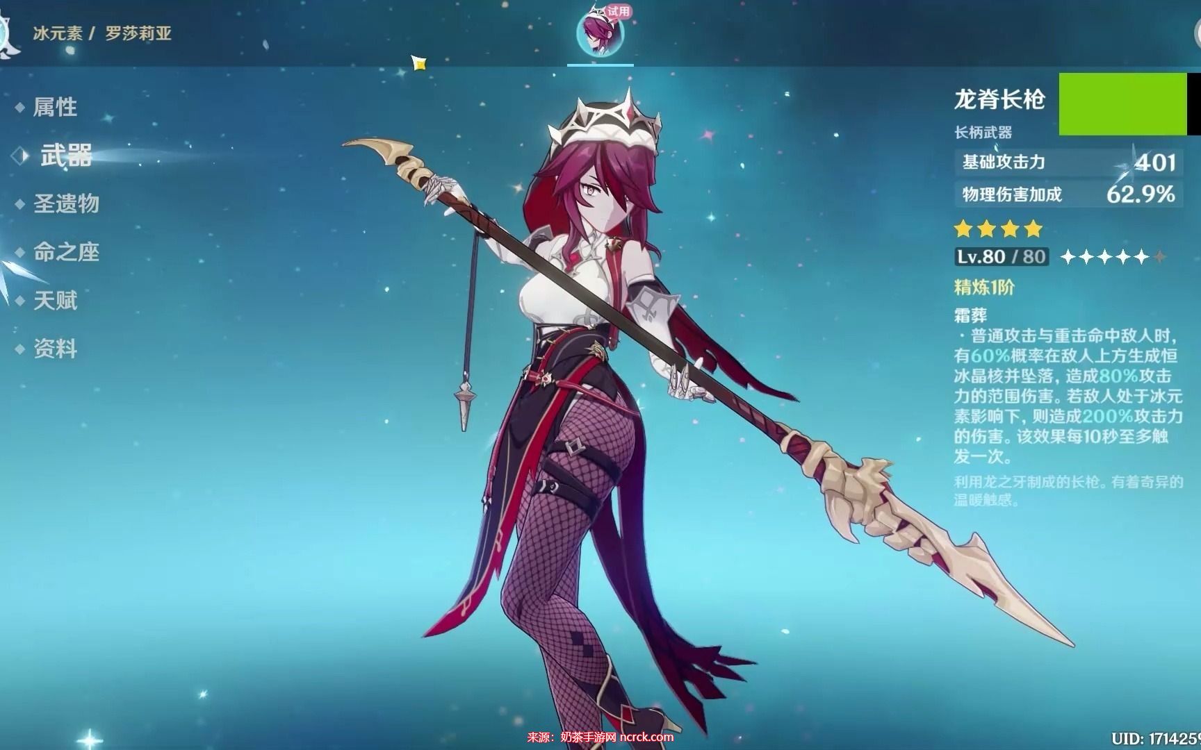 以上就是针对罗莎莉亚的武器推荐指南,选择合适的武器可以大大提升罗莎莉亚的战斗能力,让她在原神世界中大放异彩,希望这篇攻略对您有所帮助!想要了解更多相关攻略的小伙伴可以持续关注奶茶手游网,奶茶手游网每天会为大家推送最新最全的攻略,一定不要错过哦!