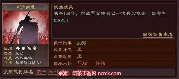 所向披靡:30%发动几率,具有最高的群体伤害效果。