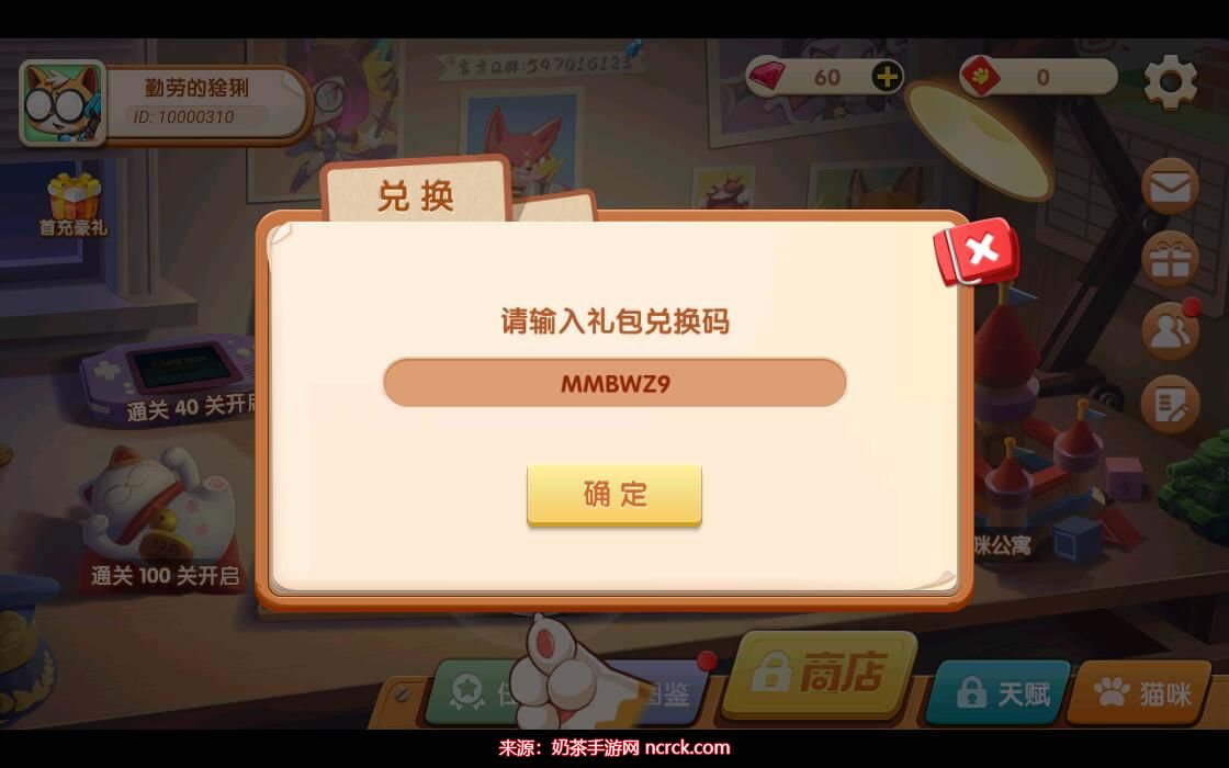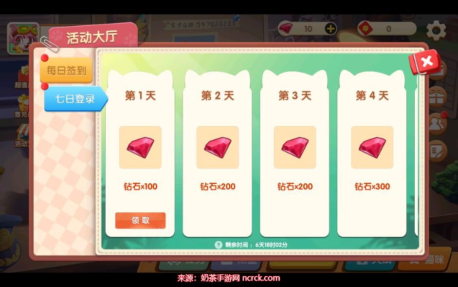4、最后,点击确定即可领取钻石、猫咪等奖励。