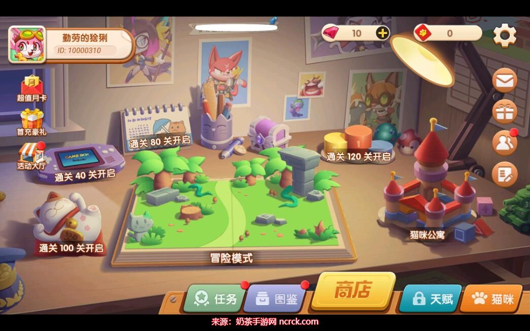 1、首先,玩家需要完成萌猫保卫战的新手任务,并返回主界面。