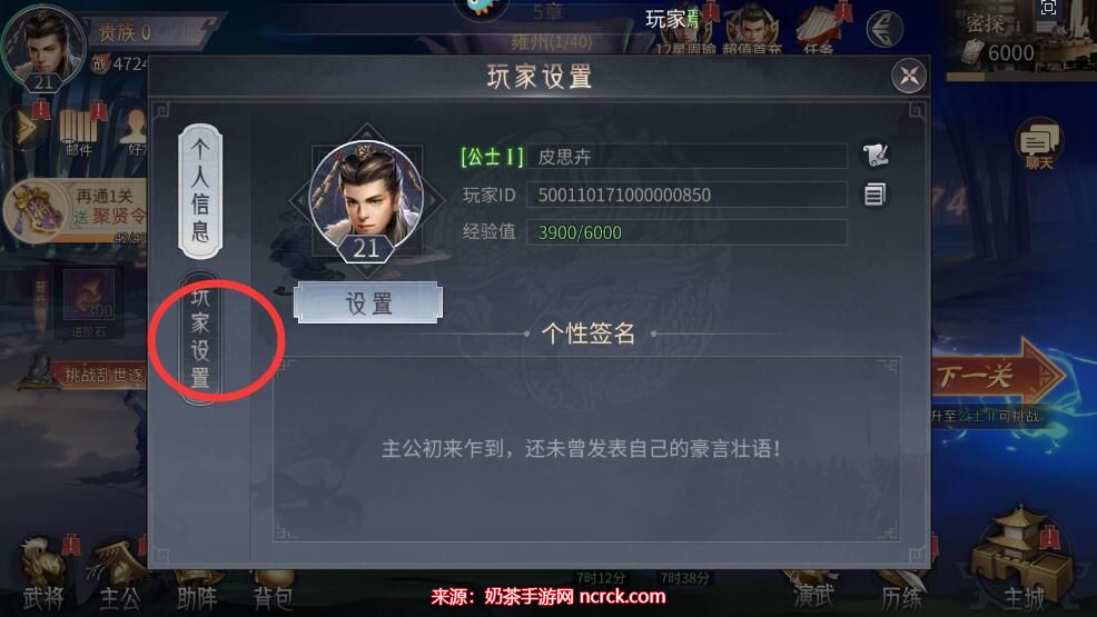 2、进入玩家信息界面后,点击左侧的玩家设置。