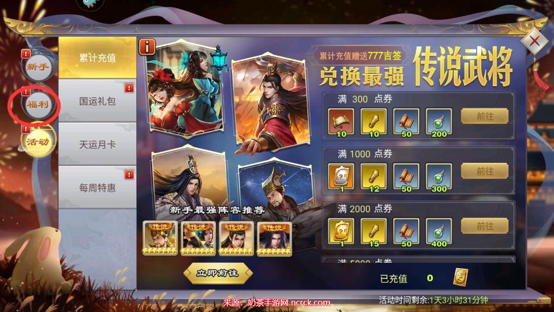 1、回到王者争雄手游界面,点击上方的福利图标。