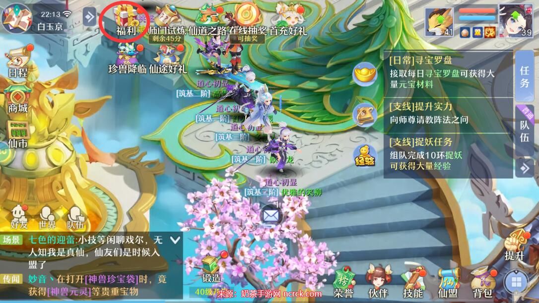 1、首先,进入《仙凡幻想》游戏,并完成新手引导任务。这样,在游戏界面的左上方会出现一个福利图标,点击它。