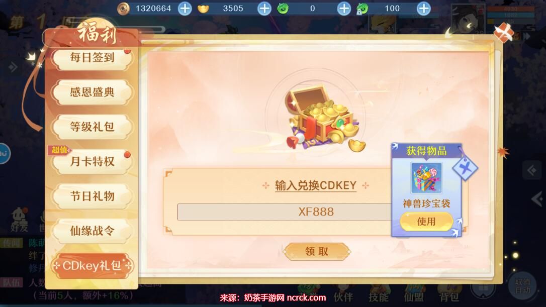 希望以上攻略能帮助各位玩家顺利使用仙凡幻想的CDKey兑换码,获得更多的游戏道具和奖励,想要了解更多相关攻略的小伙伴可以持续关注奶茶手游网,奶茶手游网每天会为大家推送最新最全的攻略,一定不要错过哦!