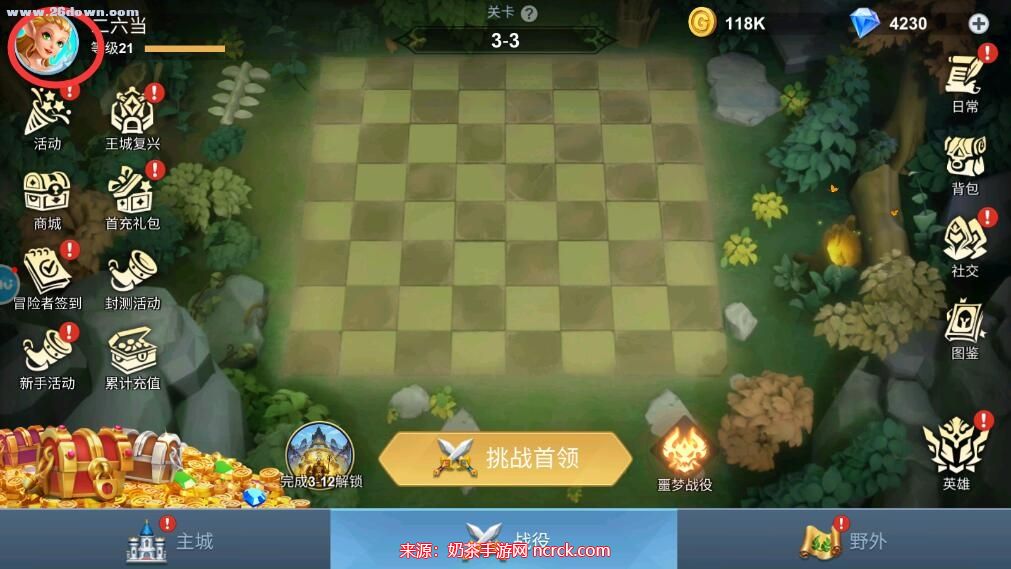 1、打开棋兵传说游戏,进入主界面后,点击您的头像。