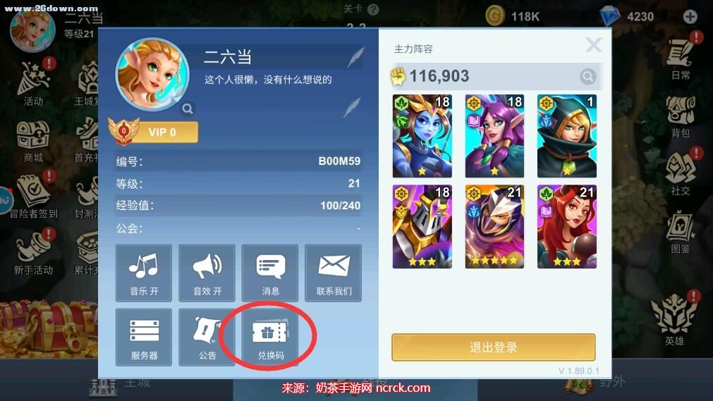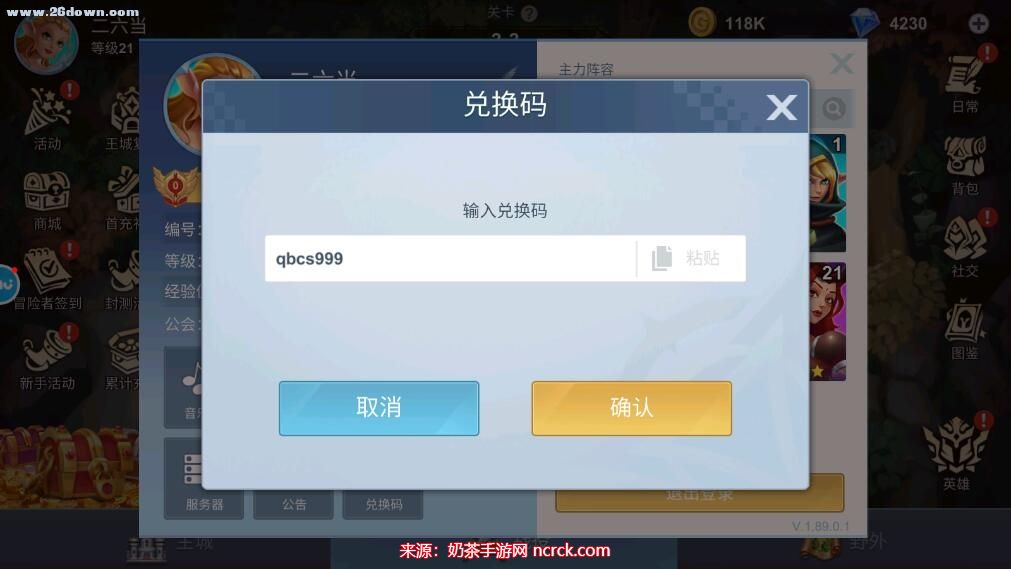 3、点击兑换码按钮,然后输入有效的兑换码。