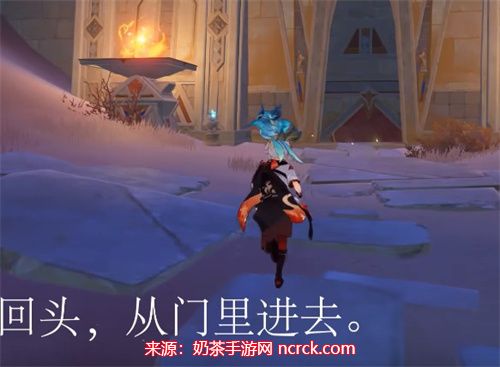2、回头进入门内:一旦传送到目的地,您需要转身,面向传送点的反方向。在这个位置,您将看到一扇门。通过这扇门,您将进入遗迹的内部。
