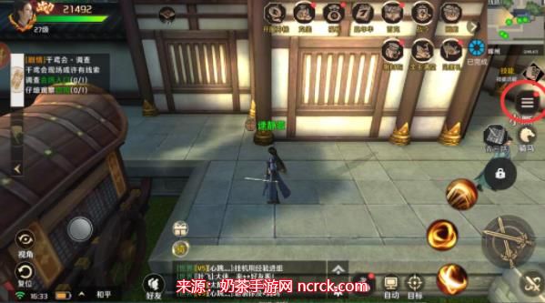 2、在界面右边的红圈处找到菜单图标,点击进入,在菜单中找到并点击进入"设置"选项。