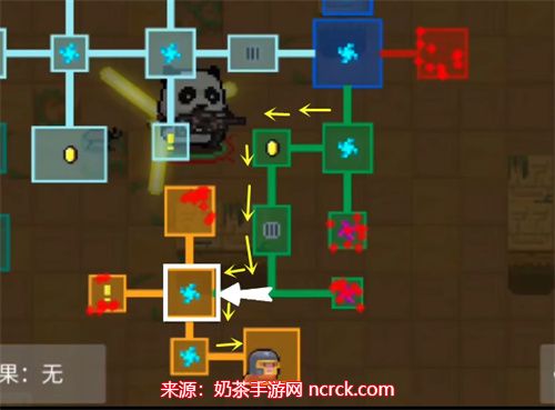 2、在清理完关卡后,会出现一个蓝色旋涡,请注意不要进入旋涡,而是继续向左侧走,这样你将进入金矿房间。
