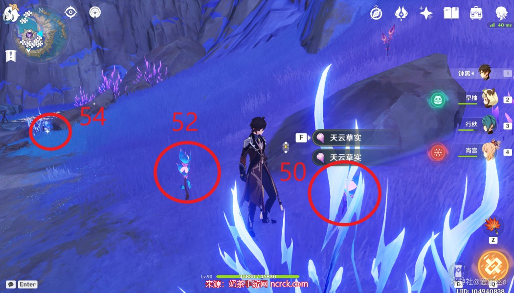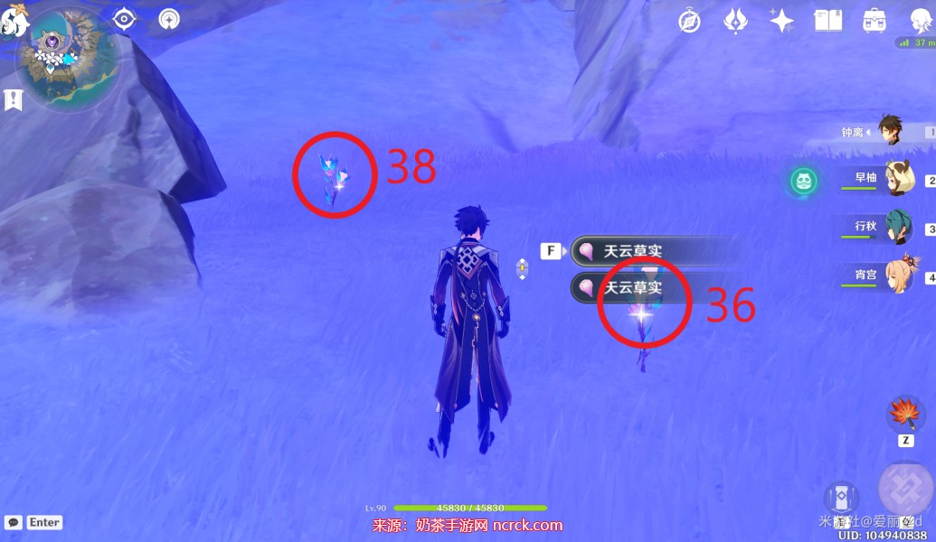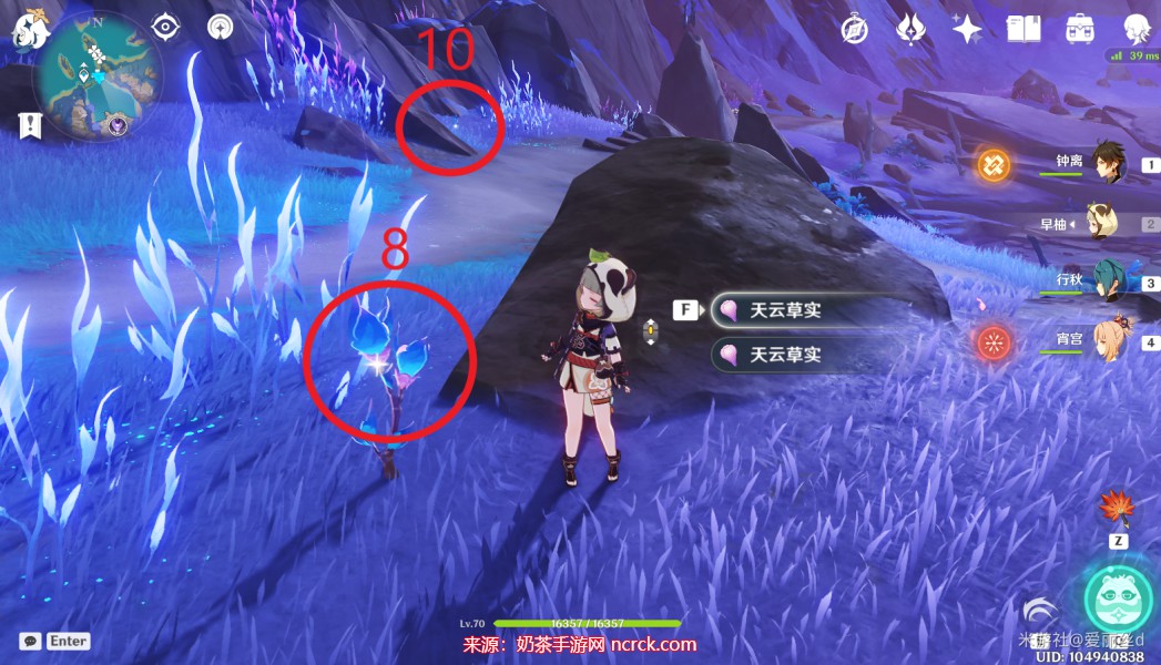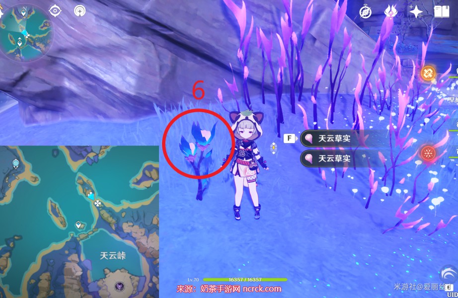 3、本图中标注的位置是容易找到的,不仅有60颗天云草实,而且走几步就会遇到天云草。如果您想简化图中的标点,也没有问题。