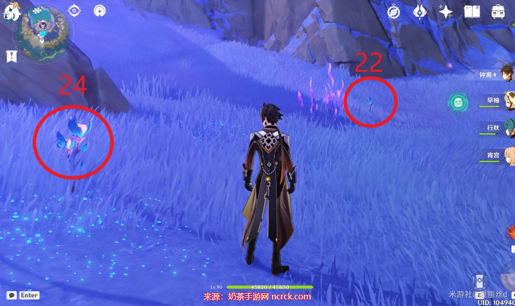 4、在清籁岛采集时,请注意仔细观察。这个地方的紫色植物很多,您需要留意闪光亮点的位置。
