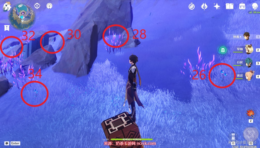 5、第二个传送点下面是天云草实最多的地方。那里的视野开阔,容易找到,尤其是在方块解谜的周围,有许多天云草植株。