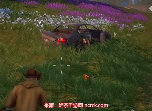 3、在周围寻找一辆废弃的汽车,坐标为5819, -3667。