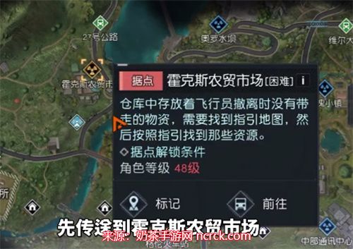 2、在霍克斯农贸市场,向西方前进,前往指定坐标。