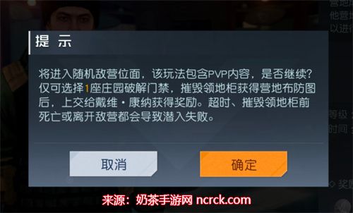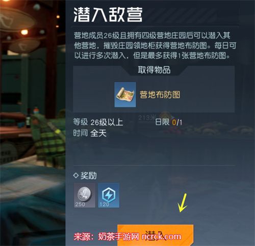 3、点击"潜入",即可进入其他玩家的营地进行偷家行动。