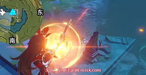 2、使用安柏的攻击来点燃火炬。