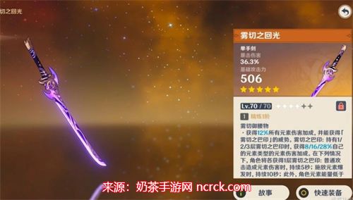 作为绫人的专属武器,是首选之一。它的主属性是暴击率,90级基础面板攻击力为608,并且暴击率为33.1%。这个武器可以大大减轻在圣遗物中寻找暴击率副属性的压力。它的被动效果能直接增加全元素伤害,并且可以叠加层数。一阶时,两层被动可以提供40%的普通攻击伤害增加,非常适配绫人使用E技能后的输出方式。随着专武等级的提升,增伤效果更加显著。如果拥有5阶专武,绫人在使用E技能后的普通攻击,即使没有其他加成的情况下,每段都能造成1.15万的伤害。