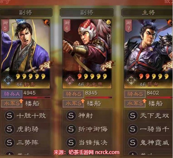 吕布的战法选择跟上面相同,黄月英选择了横戈跃马和铁骑驱驰,提高了她的输出和机动性。郭嘉选择了三势阵和虎豹骑,可以为队伍提供额外的伤害和控制能力。这个阵容注重吕布的输出,黄月英和郭嘉的辅助能力可以增加队伍的控制和防御能力。