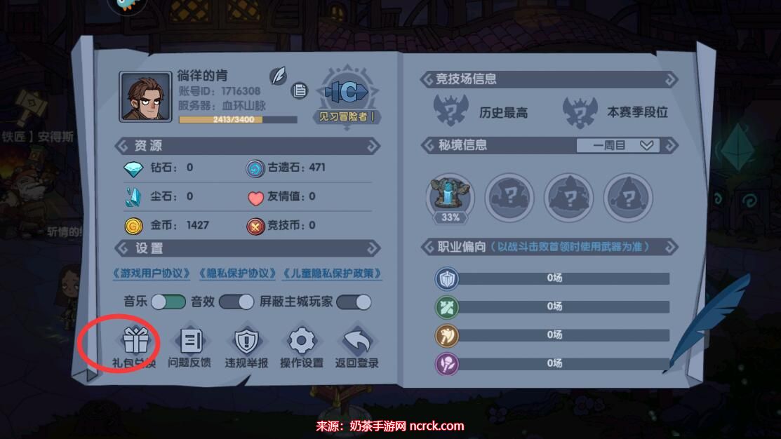 2、点击左上角的头像,进入设置界面,你将会看到礼包兑换按钮。