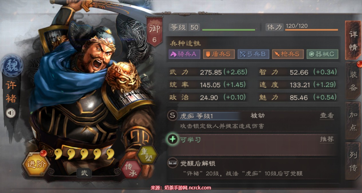 许褚 战法搭配:暴戾无仁、轻勇飞燕