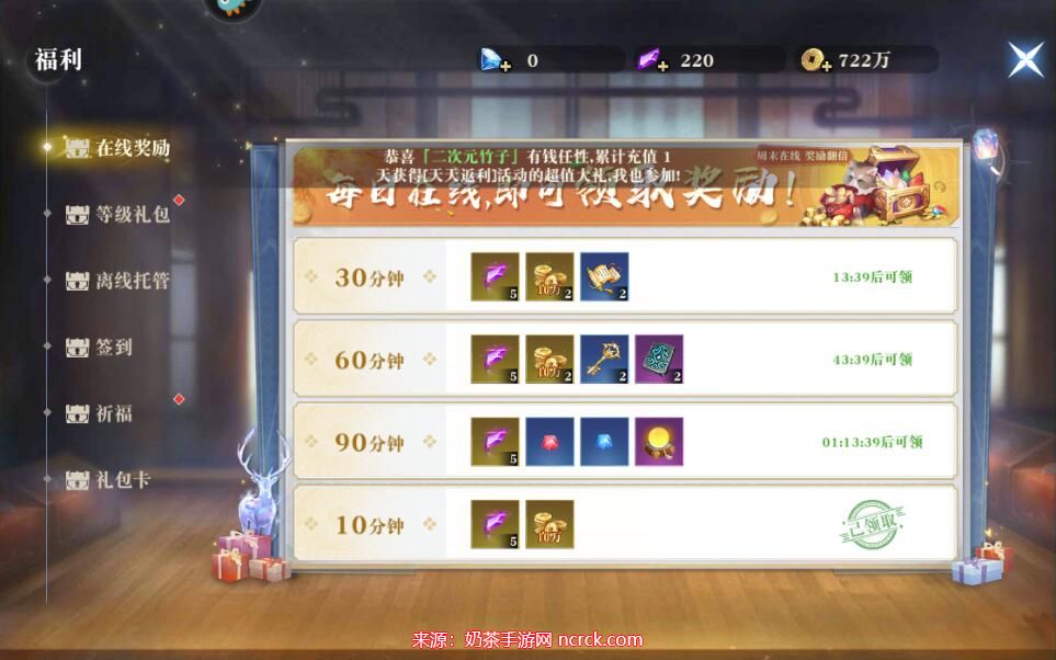 2、在福利中心页面,找到最后一项,即礼包卡,点击进入。