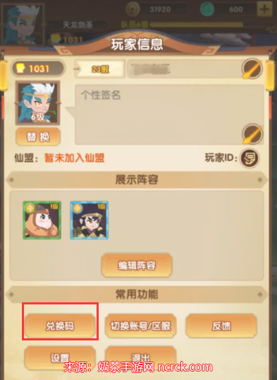 2、进入玩家信息页面以后,我们点击下图位置的兑换码按钮。