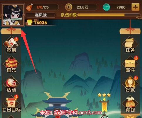 1、进入幻之封神游戏客户端,然后我们需要完成主线关卡3-21,之后点击左上方的个人头像。