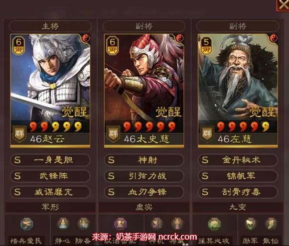 这个阵容注重输出和突破能力。赵云的战法“草船借箭”可以增加全体友军的攻击,同时通过“威谋靡亢”提升自身的攻击力。太史慈的战法“速乘其利”可以迅速击败敌方,并通过“暴戾无仁”增加自身的暴击率。左慈在这个阵容中可以提供治疗和辅助能力,战法“锦帆军”可以治疗友军,并且“武锋阵”可以增加友军的暴击率。兵书选择侧重于增加防御、持续战斗能力和突破伤害。