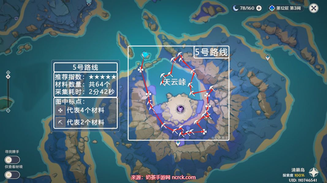 跑图收集材料要带上双风和吃药并携带适合的角色,解锁天云峠世界后采集天云草实作为稻妻的突破材料,采集前需完成清籁逐雷记任务,应对雷暴天气和祟神污染,天云草实位于清籁岛,每株48小时刷新每株可收两枚果实。
