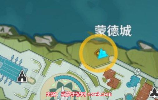 1、首先打开地图,去往蒙德城门口;