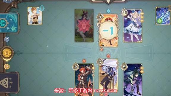 1、我们是万能元素骰所以可以自由运用技能,迪卢克首先释放一个三费的技能给安柏造成3点伤害,安柏会固定释放必杀技;