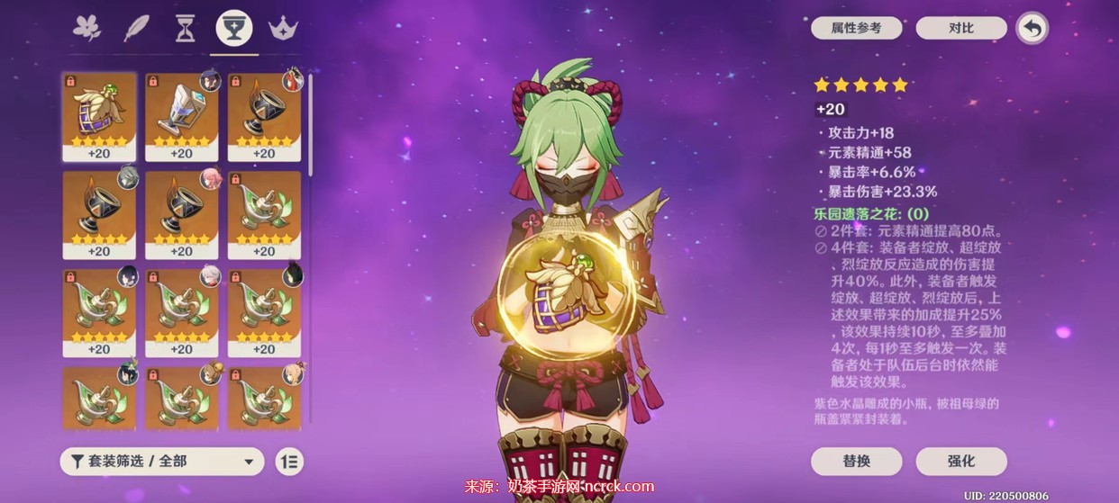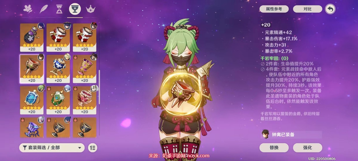 然而,由于这套圣遗物所在的副本并不是经常被玩家刷,因此我们还有另外一套圣遗物可供选择,同样非常适合久岐忍。