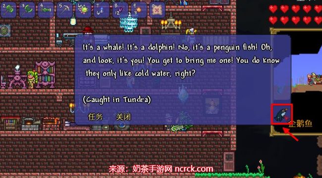 1、在海滩或其他水面上,会随机出现一个沉睡的渔夫。和其他被束缚的NPC一样,需要与他对话来激活任务。