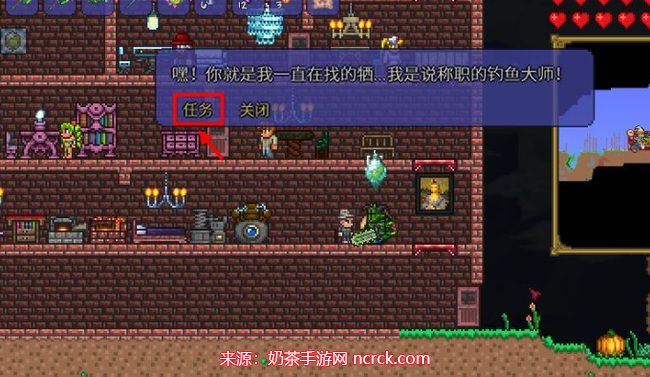 3、如果玩家有一间适合的空房间,渔夫将会不久后入住。与他对话后,点击"任务"。