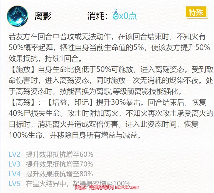 技能二:离影(0火)