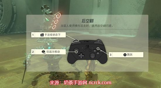 9、然后便需要使用后空翻,按照介绍打出该动作。