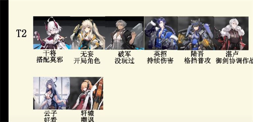 T2:干将,英招,陆吾,湛卢,无妄,破军,云子,轩辕。