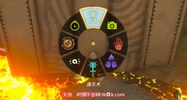 5、这里有大量的岩浆,因此玩家们需使用水之果制造岩石,并利用岩石使用通天术。