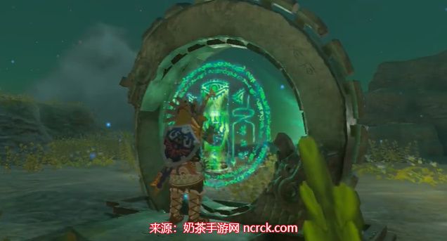 1、首先是抵达天空岛这里,在这个地点上有一个机制,启动机制后,前方围绕山脉的水源将会降低。