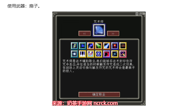 使用各种各样的符咒来削弱敌人的辅助职业。