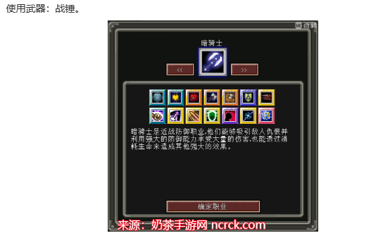 1、想尝试防守型职业的小伙伴小编建议游玩黑暗骑士,这个职业可以吸引仇恨,还能利用生命值来释放技能。