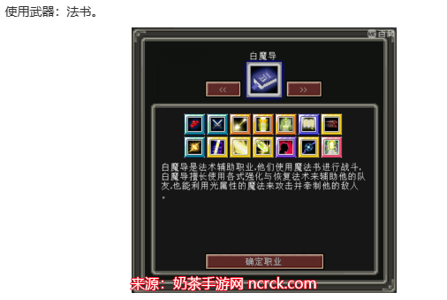 5、对于想玩支援型角色的小伙伴,建议尝试白魔法师,能够施展各种恢复法术和增强法术,为队友提供各种强化效果,非常强大。