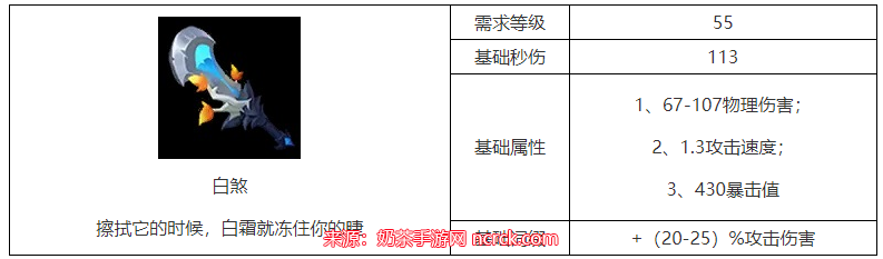 2、该装备附加 (6–7) - (9–10) 点物理伤害;