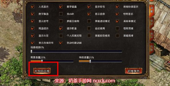 3、第三步:在设置页面找到左下角的【礼包码兑换】,点击进入兑换码输入页面。