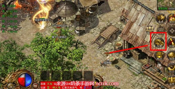 1、第一步:进入一战称王传奇小程序游戏以后,我们只需要点击右侧箭头所指的方块图标。