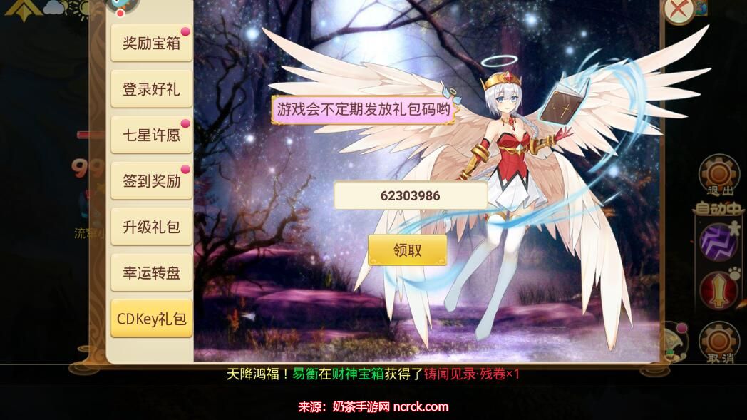 2、进入到福利界面后,点击最后一项也就是cdkey礼包按钮