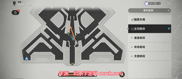 2、接着前往收容舱区域的一楼西侧进行解密,从左边开始往下走,启动机关后会出现蓝色路径;
