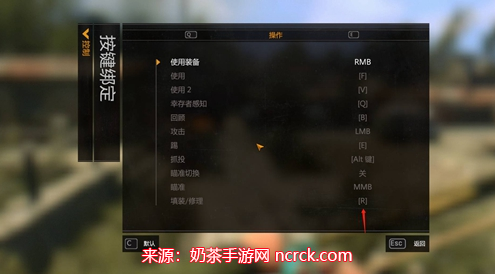 2、其实在游戏中的按键绑定中就可以直接看到切换箭头按R键。