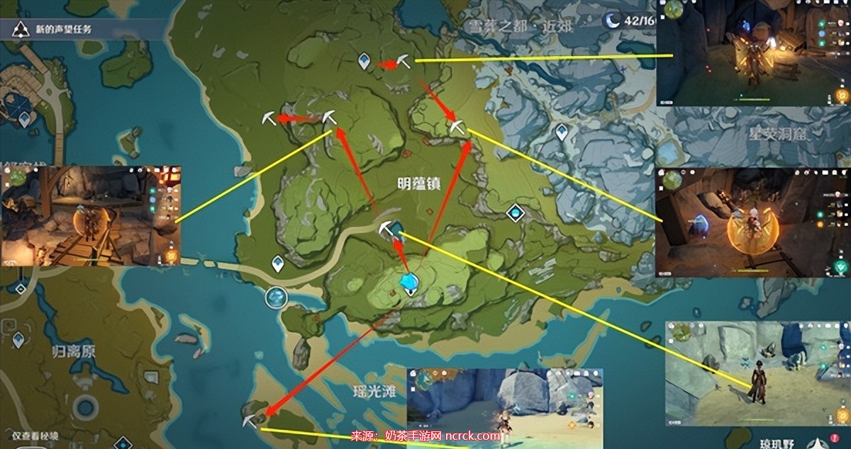 此处为明蕴镇地点,由于明蕴镇处存在着矿洞,里面的矿石爆率也是属于随机性,在数目在我会采用估计的方式。