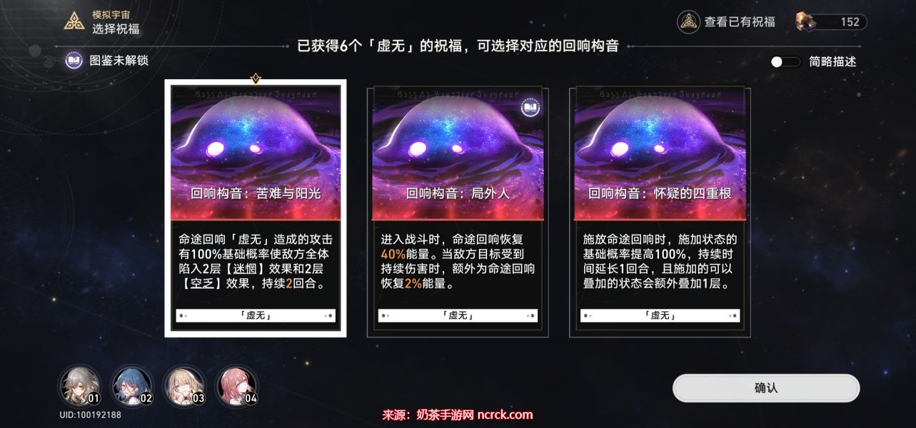除了伤害输出之外,我们还需要考虑一些回复手段,最好获取到1星虚无祝福的回血效果,以缓解娜塔莎的回血压力。